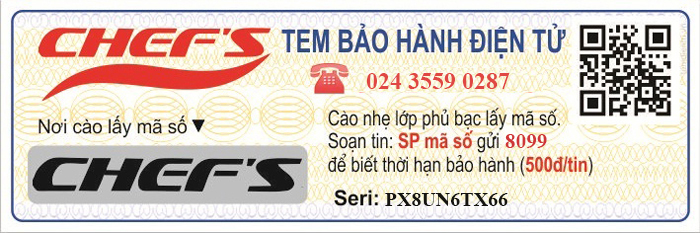Tem bảo hành điện tử của bếp điện từ Chefs EH MIX534